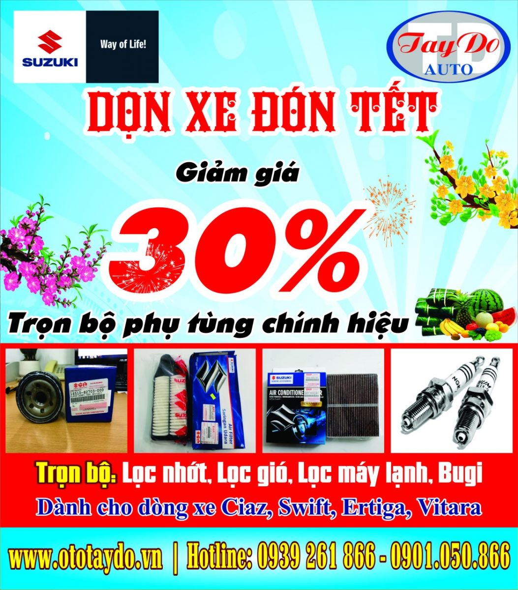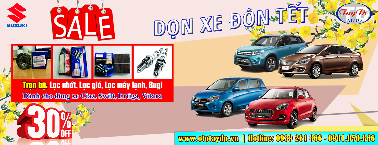 Nhằm tri ân và hỗ trợ tốt nhất cho khách hàng chăm sóc xe dịp Tết nguyên đán sắp tới, Suzuki Tây Đô Cần Thơ trân trọng gửi đến Quý khách hàng chương trình khuyến mãi "Dọn xe đón tết".