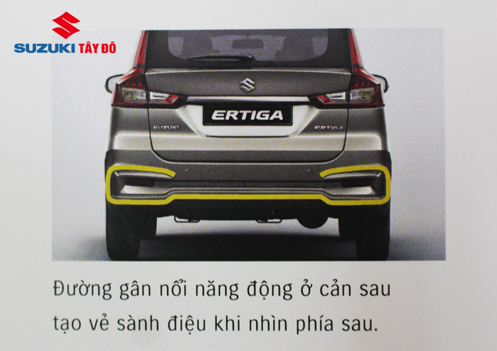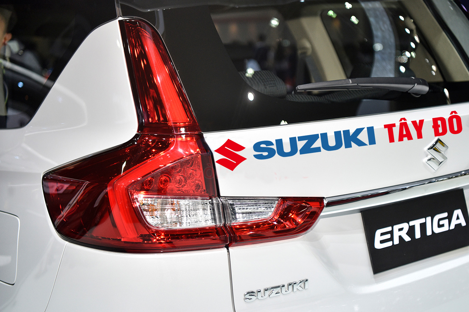 Quan sát thêm phần hông và đuôi xe Ertiga mới, có thể thấy đèn hậu được thiết kế dạng chữ L Trên phiên bản cao cấp GX, xe được trang bị thêm đèn sương mù, gương chiếu hậu chỉnh điện tích hợp báo rẽ và đèn phanh trên cao dạng LED.