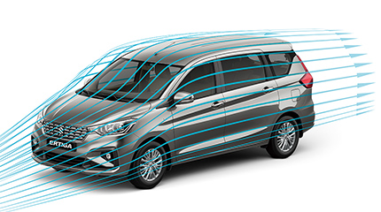 Khí động học: Khả năng khí động học dẫn đầu phân khúc của Ertiga sành điệu đạt được nhờ việc áp dụng CAE (kỹ sư máy tính) và thử nghiệm trong đường hầm gió, góp phần làm tăng hiueeuj suất nhiên liệu và giảm tiếng ồn do gió.