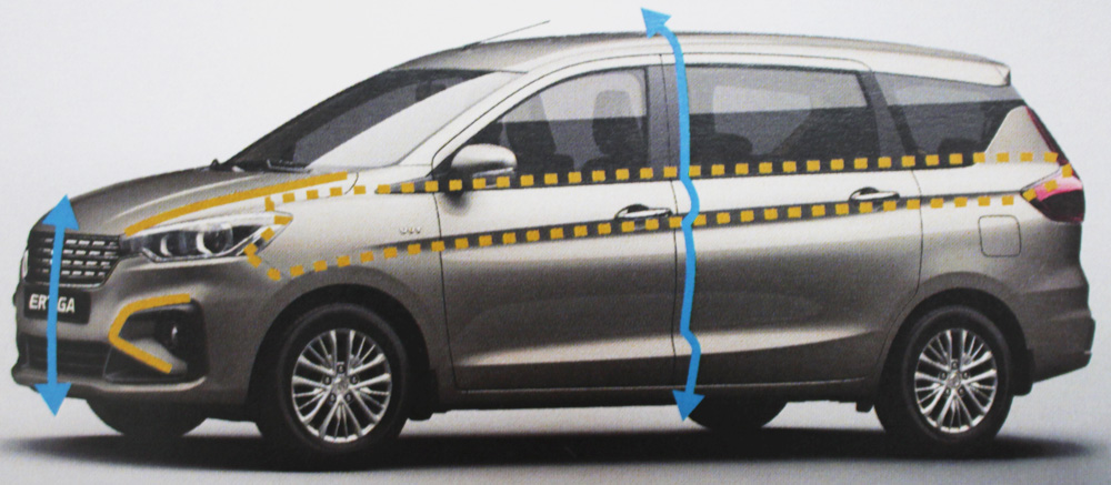 Giảm thiểu chấn thương cho người đi bộ: Cấu tạo nắp ca – po, hệ thống gạc mưa , và một số chi tiết khác của Ertiga được thiết kế giảm thiểu chấn thương đầu và chân cho người đi bộ nếu không may xảy ra tai nạn.