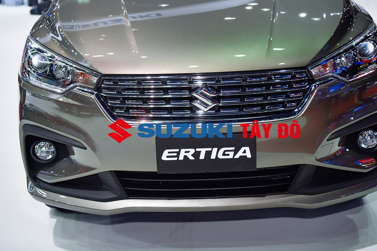 Phần đầu xe của Ertiga mới được thiết kế với phong cách vuông vức mạnh mẽ, đèn pha dạng hình thang vuông ứng dụng công nghệ projector, đèn sương mù tạo hình hốc mới, lưới tản nhiệt mới mạ crôm. Phần cản trước của xe cũng được thiết kế thể thao với những đường nét cứng cáp với lỗ thông gió 3 tầng.