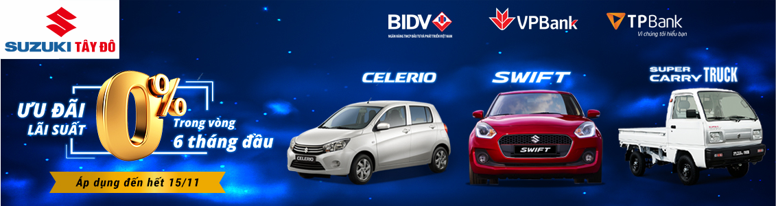 Theo đó, khách hàng mua Celerio, Swift, Ciaz, Carry Truck và Blind Van sử dụng vốn vay từ một trong 03 ngân hàng đối tác BIDV, TPBank, VPBank sẽ được hưởng ưu đãi tương đương lãi suất ngân hàng trong vòng 06 tháng đầu.