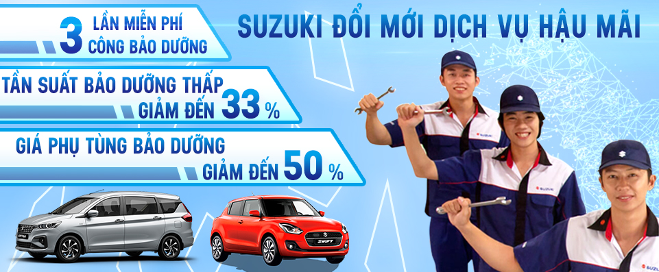 - Khách hàng có thể đưa xe đến bất kỳ trạm bảo hành nào thuộc các Đại lý ủy quyền của Việt Nam Suzuki để thực hiện các lần kiểm tra bảo dưỡng định kỳ miễn phí công.
