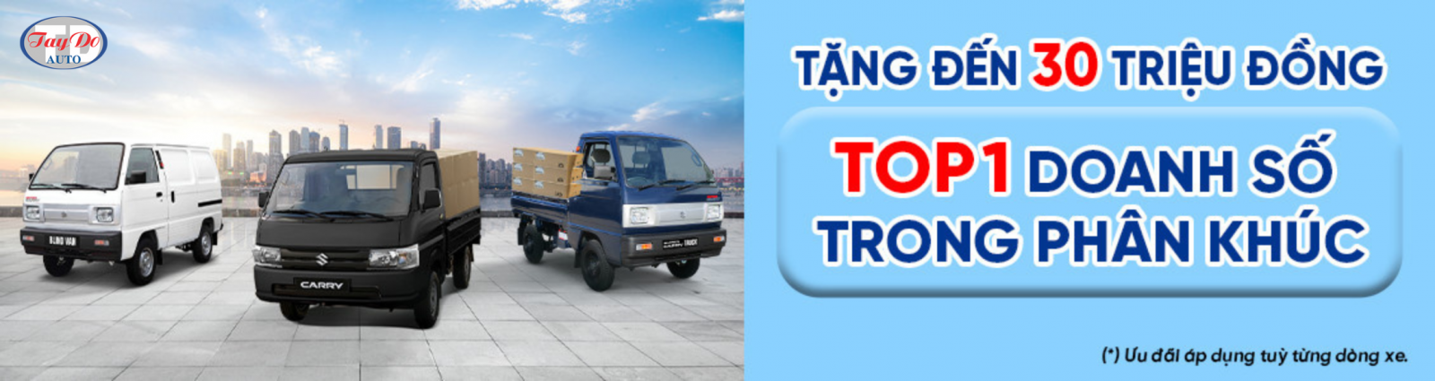 Từ 01/05 đến 31/05/2023, khách hàng khi mua một trong các mẫu xe thương mại Suzuki đều được hỗ trợ 100% lệ phí trước bạ. Riêng Blind Van và Carry Truck được tặng kèm phiếu nhiên liệu tương ứng 500 lít và 1000 lít, tổng trị giá lên đến 30 triệu đồng, mẫu Carry Pro cũng được tặng phiếu nhiên liệu 350 lít.