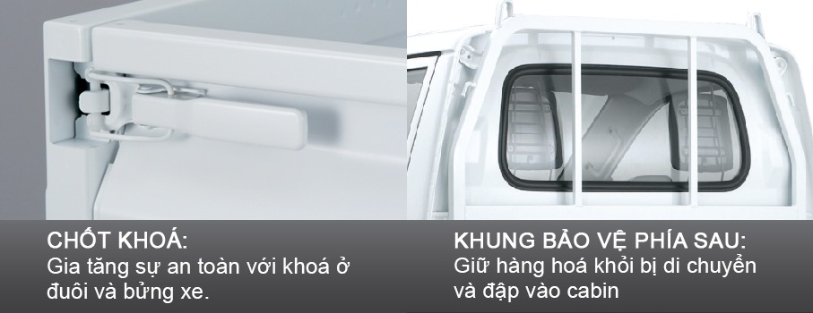 Chốt khóa cửa ở đuôi xe và bên hông xe, có thể kết hợp cùng dây ràng giữ chặt hàng hóa hơn.